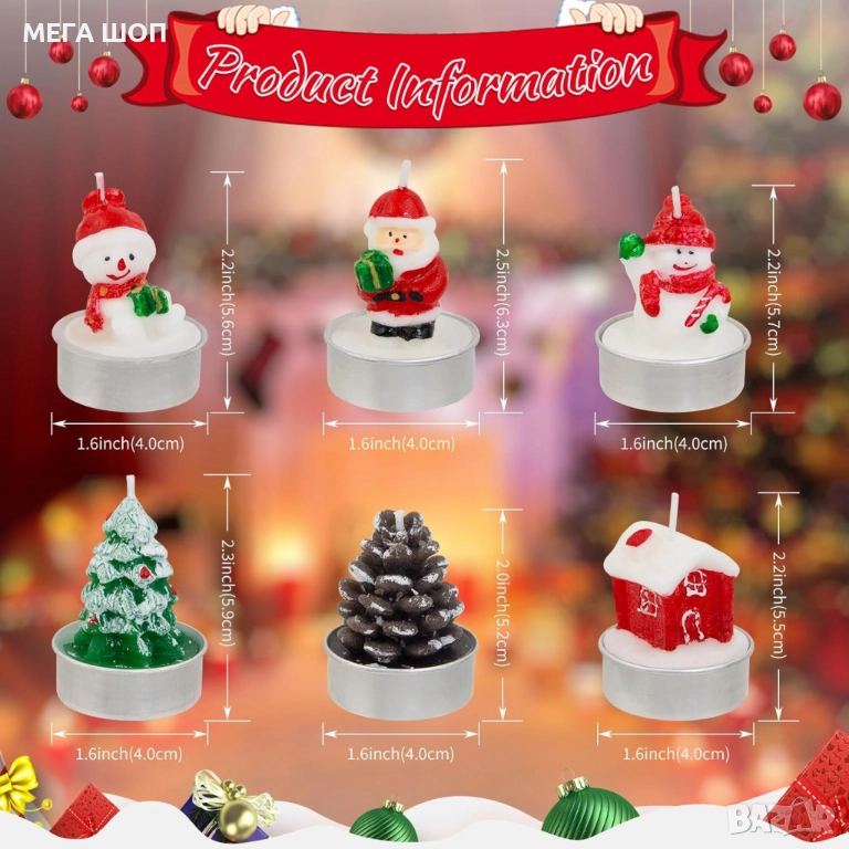 12 Коледни ароматни чаени свещи в кутия → Обява 52587160