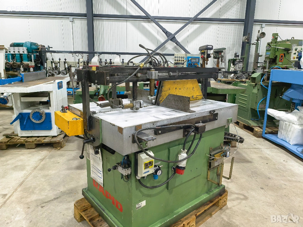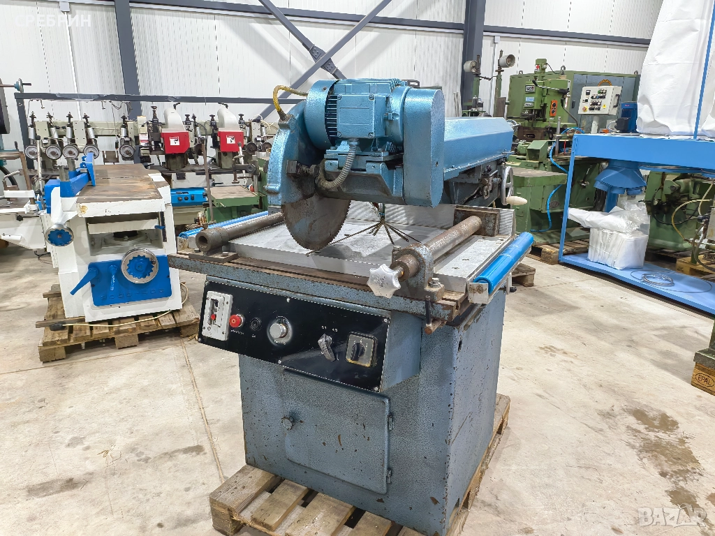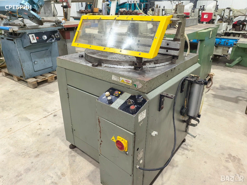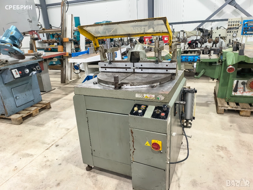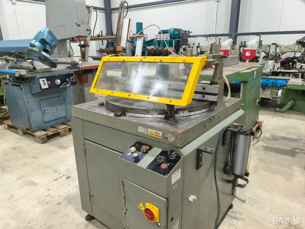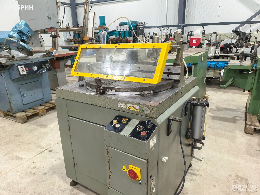 В наличност автоматична хидравлична пендула с диск 500мм., височина 160мм. и широчина 400мм. Завъртане на масата в двете посоки за рязане на 45 градуса. Хидравличен цилиндър задвижващ диска нагоре и надолу + два пневматични цилиндъра за притискане на детайла. Пендула та е подходяща за алуминий, пвц и дърво. Машината е в топ състояние. За повече информация по телефона Имам още 7-8 вида различни пендули + други дърводелски машини.