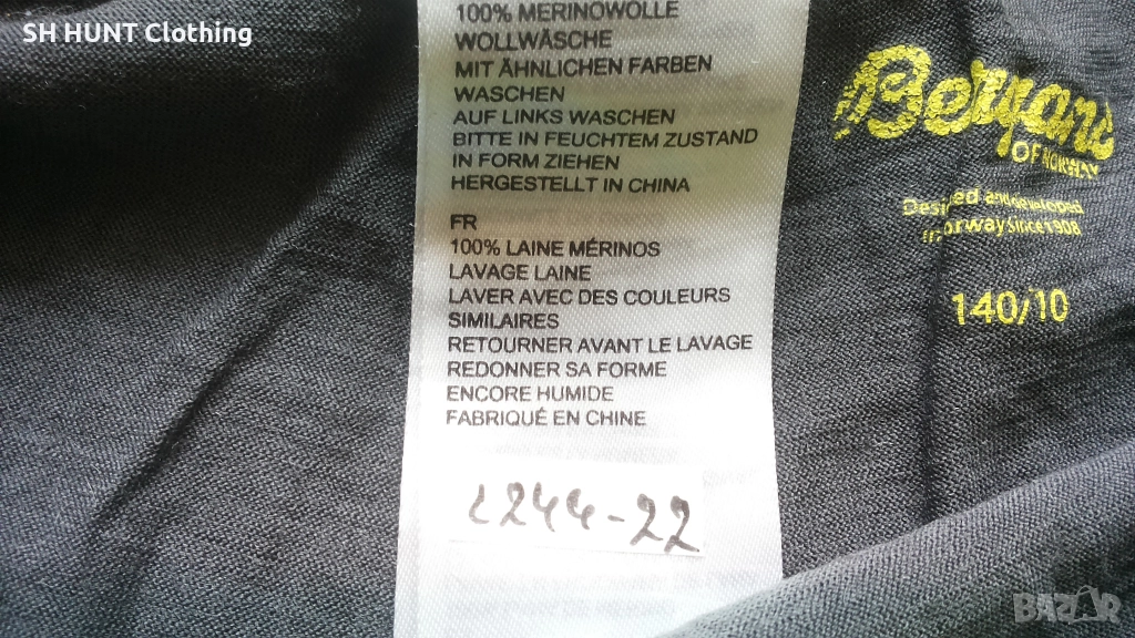 Марка: Bergans of NORWAY FJELLRAPP Young TIGHTS 100% Merino Wool - детска термо долница 100% Мерино вълна L244-22 Размер: 10 години / 140 см височина - ширина в талията 28 см , разтяга се до 40 см , дължина 80 см.