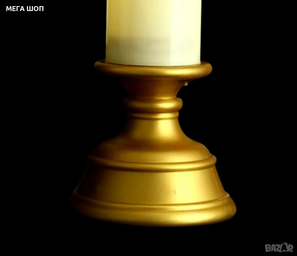 LED свещ със златиста основа и реалистичен пламък → Обява 52587254