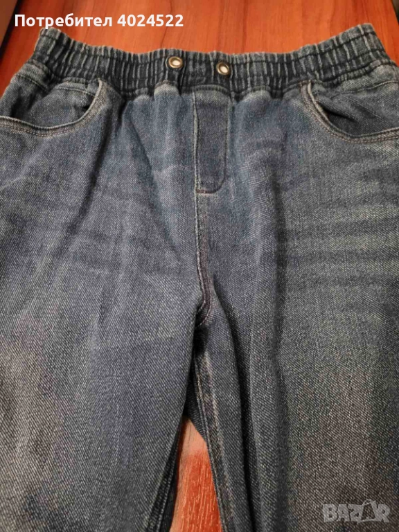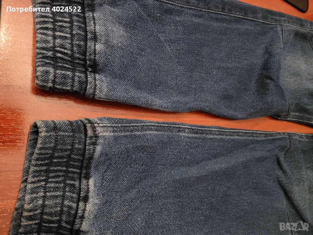 Дънки за момче - 176 см. Мека и много приятна дънкова памучна еластична материя. На талията е с ластик. Крачолите също завършват с ластици. Лесни за обличане и събличане, няма ципове и копчета и най-важното са меки, като същевременно не са тънки. Предимство е, че са дълбоки, с висока талия и кръста не остава гол.