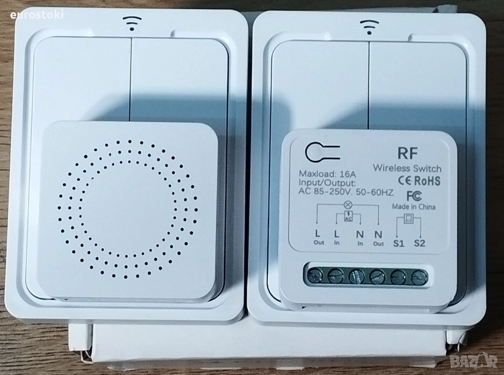Пакетът включва: 2 x двоен безжичен превключвател за дистанционно управление, 2 x