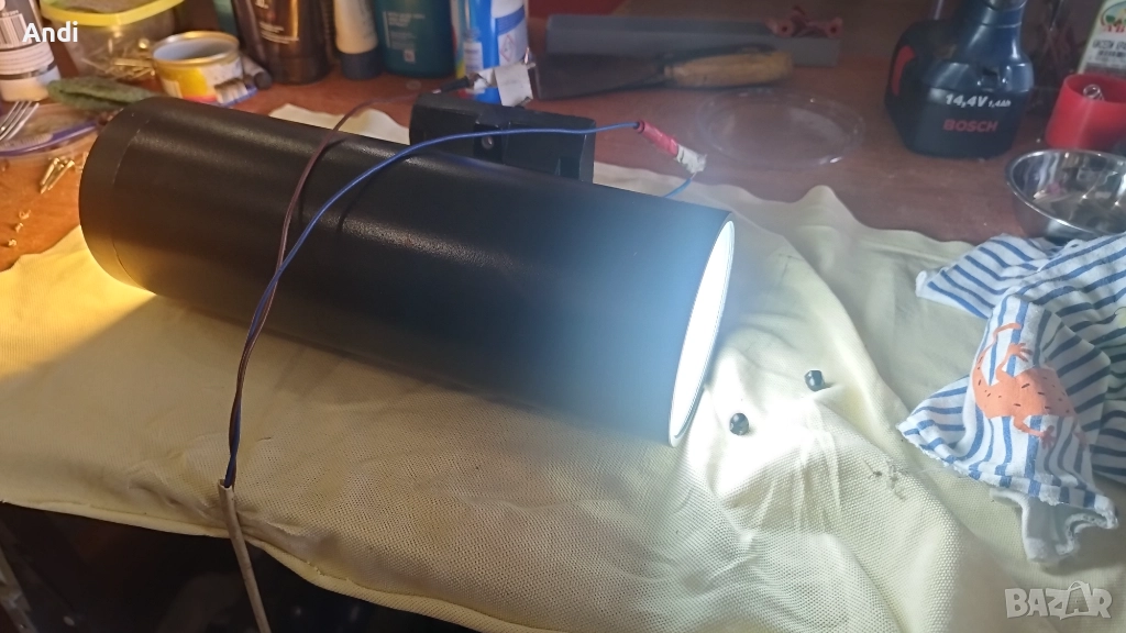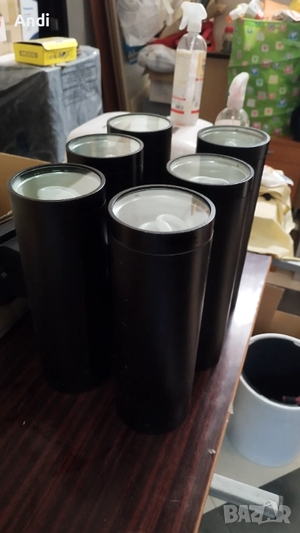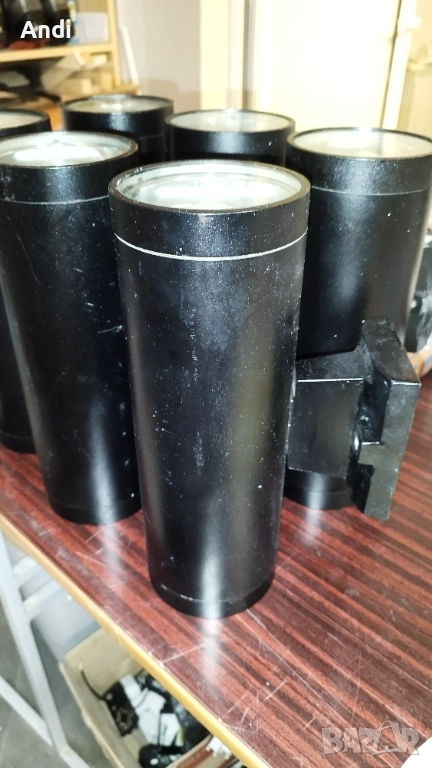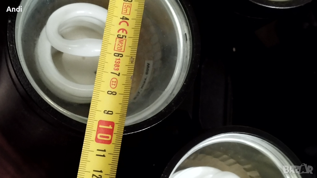 Размера на лампите е дължина 30см и диаметър 10см и отстояние от стената 20см. Лампите са използвани но в добро състояние.