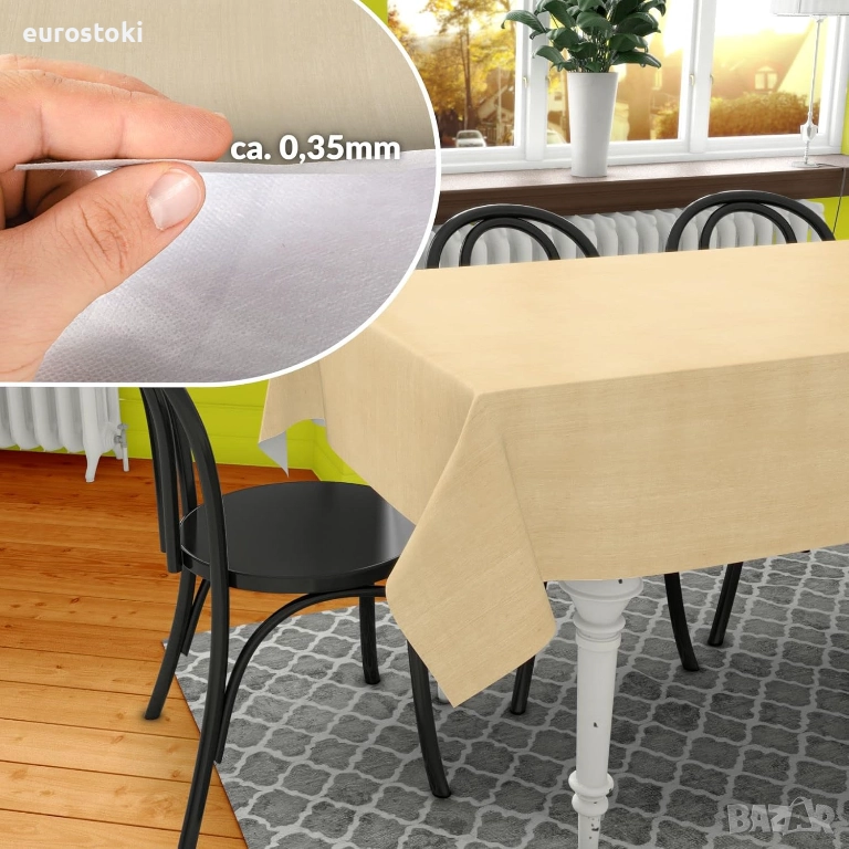 Тази покривка за маса от мушама е устойчива на разкъсване, издръжлива и устойчива. Сертифицирана е по Oeko-Tex. С тази покривка за маса можете да сте сигурни, че купувате висококачествен и честен продукт.