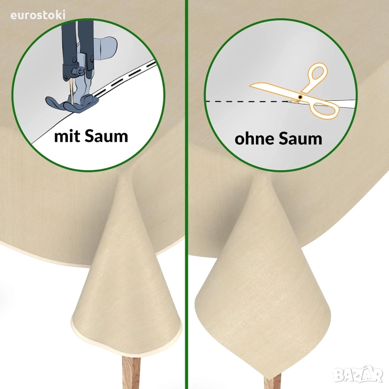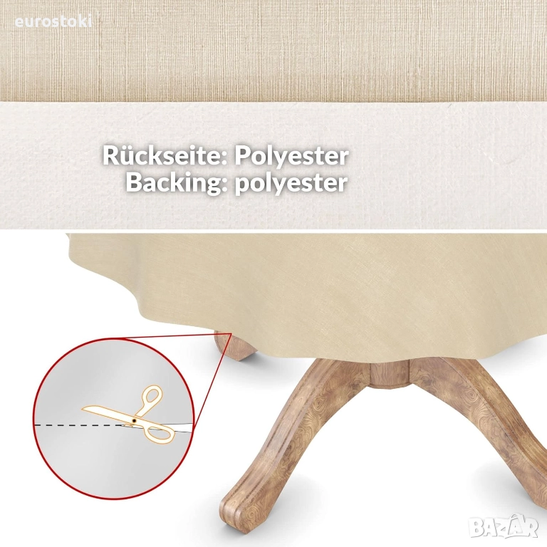 Търсите практична, лесна за поддръжка и устойчива на атмосферни влияния покривка от мушама, която също така може да се пере? Тогава мушамата покривка с висококачествен релефен текстилен ефект е правилният продукт за вас. Тя е не само лесна за почистване, но и може да се пере. Долната ѝ страна също е изработена от екологично чист и водоустойчив слой, който пасва идеално на вашата маса за всеки повод.