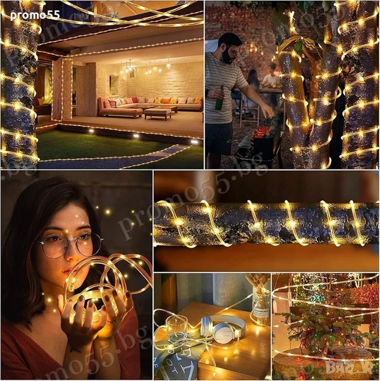 С коледните маркучи създайте романтична, топла и уютна атмосфера и се насладете на магическия блясък, който те внасят във вашите коледни и новогодишни нощи в топла светлина и осем режима на светене и премигване.