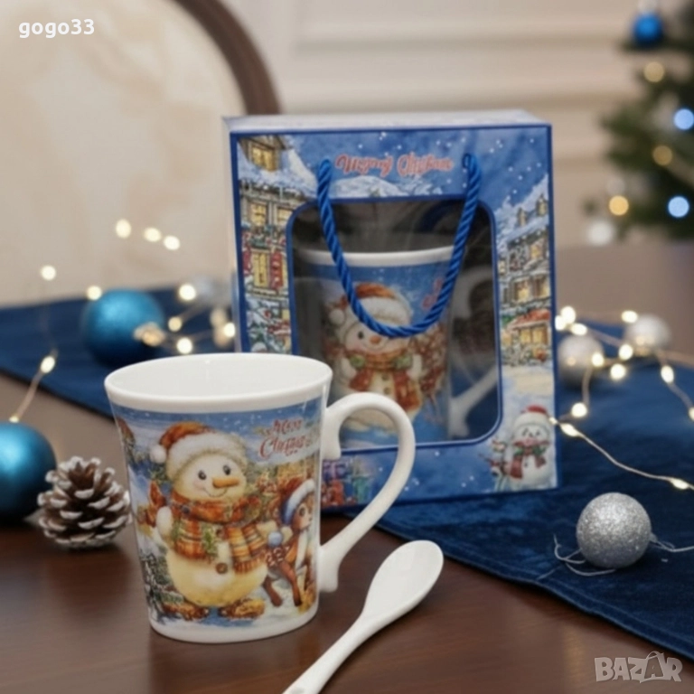 Празничен комплект за топли напитки – Керамична чаша и лъжичка в коледна опаковка Цена: 16 лева 8.1804 евро Технически характеристики Материали: Керамична чаша и керамична лъжичка; Размери: Чаша ~330 мл; Цветове: Синя подаръчна кутия с коледен принт – снежен човек, еленче или сърничка; Безопасност: Устойчива керамика, подходяща за топли напитки; Допълнителни елементи: Подаръчна кутия с декоративна дръжка; Подходящ за деца: Да – безопасен дизайн, без остри ръбове; Опаковка: Здрава подаръчна кутия с прозрачен прозорец; Изпраща се според наличността в склада.