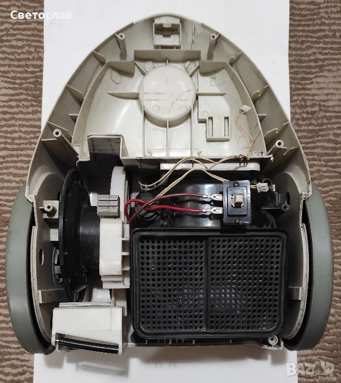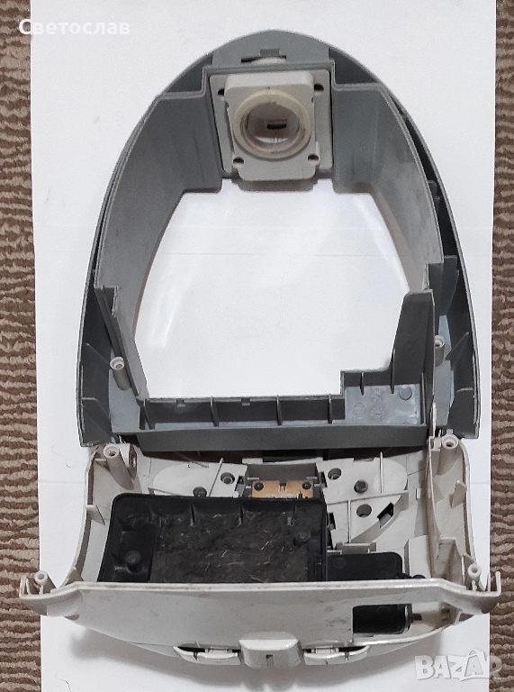 Корпусът (тялото) се продава цял. Включва горна и долна половина , заедно със контейнерчето за боклук , както и двата филтъра. Модулът (платка) за регулиране на оборотите , термо бушона , както и всички изводи и букси от него са налични и работят. Капака на кутията за двигателя е здрав и си е на мястото. Механизмът за навиване на кабела (макарата) също е на мястото си и работи , но няма кабел.