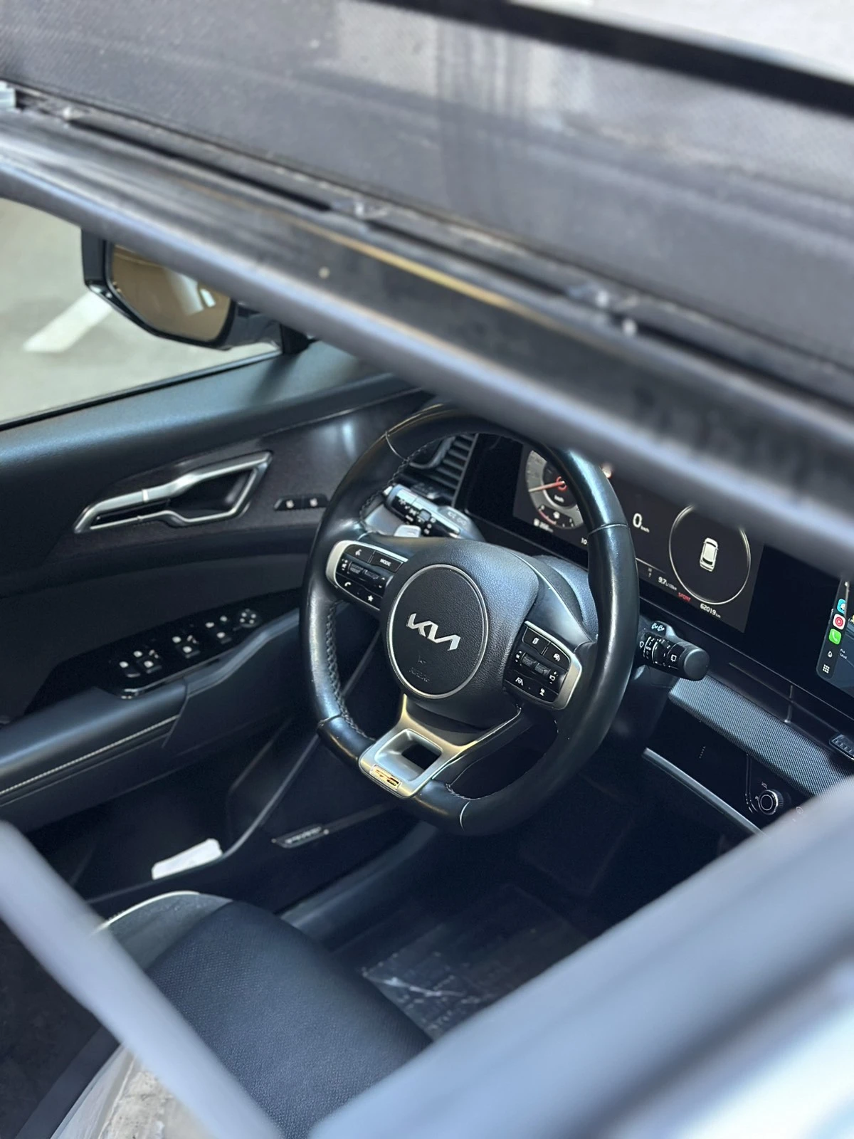 Колата е с оставаща гаранция до 2030г в Киа България Колата е с всички екстри за модела GT-LINE двуцветна, MEK ХИБРИД Затъмнени емблеми защитно фолио на фаровете, затъмнени предни прозорци. Пълен комплект ключове и документи Колата е гаражна идва с два чифта гуми зимни мишелин летни континентал Два вида стелки гумени и текстилни Комфорт и интериор: Кожен салон с алкантара / Еко кожа Електрически регулируеми седалки с памет (Memory Seat шофьор) Подгряване на предни и задни седалки Вентилация на предни седалки Подгряване на волана тризонов климатроник Амбиентно осветление с възможност за избор на цвят Панорамен стъклен покрив с електрически люк Автоматичен електрически багажник Задни седалки с регулируем наклон Кожен мултифункционален волан (D-образен, спортен тип) Електронна ръчна спирачка с Auto-Hold Мултимедия и технологии: 12. 3 дигитално табло + 12. 3 сензорен екран (двойна извита конзола) Навигация и пълна интеграция с Android Auto / Apple CarPlay Безжично зареждане за телефон Премиум аудио система Harman Kardon 360 камера (Surround View Monitor) Предни и задни парктроници Автоматични дълги / къси светлини Дъждовен и светлинен сензор Електрохромно вътрешно огледало Безопасност и асистенти: Адаптивен автопилот (Smart Cruise Control) Асистент за следене на пътната лента (LKA / LFA) Асистент за движение по магистрала (HDA) Асистент за предотвратяване на челен удар (FCA) Следене на мъртвата зона с камера (BVM) Асистент за напречен трафик отзад (RCCA) Разпознаване на пътни знаци Система за предупреждение при умора на водача Електронно управлявано адаптивно окачване (ECS) Контрол при спускане и изкачване Дистроник Екстериор: 19 алуминиеви джанти (GT-Line дизайн) Спортен пакет GT-Line (броня, прагове, дифузьор) LED предни, дневни и задни светлини Maтрични фарове Тъмни задни стъкла (Privacy Glass) Електрически прибиращи се странични огледала Хромирани и черни гланцирани детайли Рейлинг на покрива