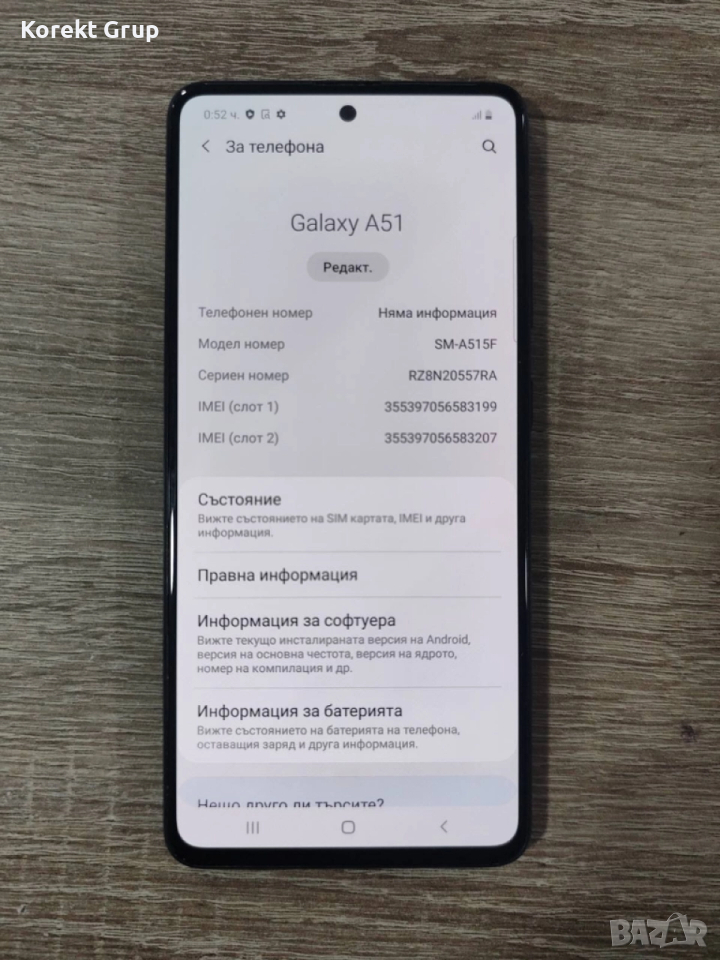 A51 в перфектно състояние стилен и красив идва с много красиво калъфче има вътрешна памет 128гб/4гб няма забележки телефона няма одрасквания никъде нито по корпуса нито по дисплея...