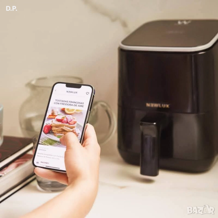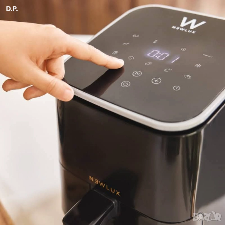 Компактен с изключително елегантен дизайн Еър Фрайър Newlux е с лед сензорен панел с 8 програми до 230°С