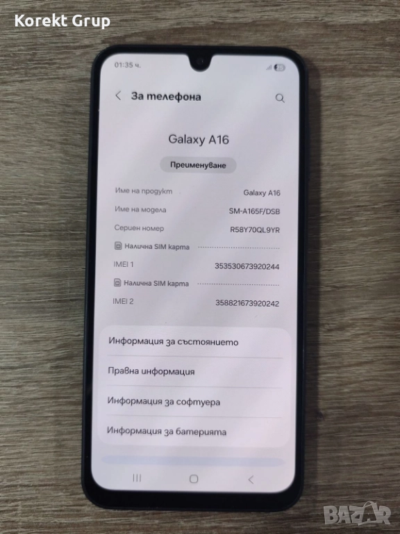 Samsung Galaxy A16 128gb вътрешна памет с 4гб рам памет телефона е запазен изцяло фукционален без външни забележки върната фабрични настройки идва така както е на снимки те.Без бартери,пращам с опция преглед и тест преди плащане използвате 10% отстъпка от цената на доставка,работим с Еконт..