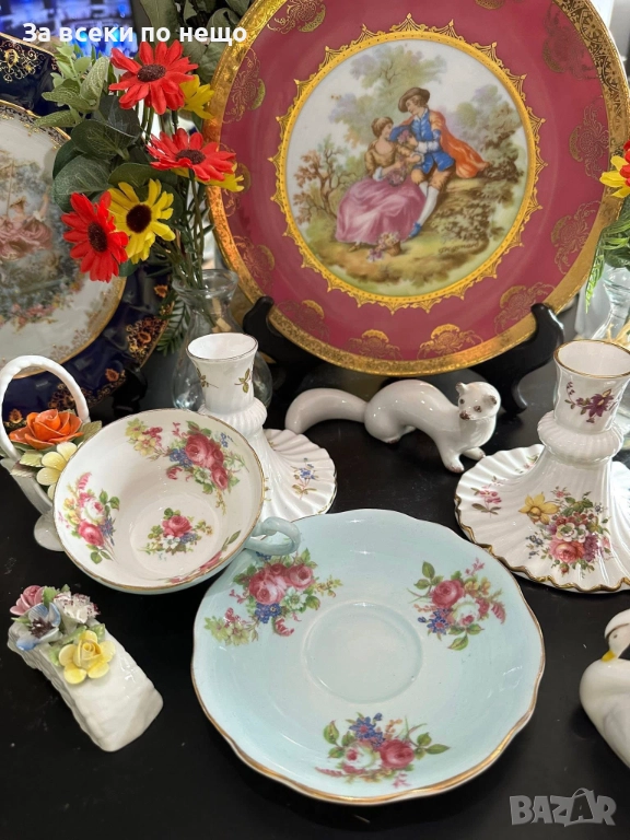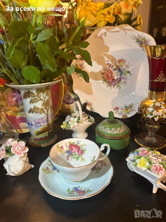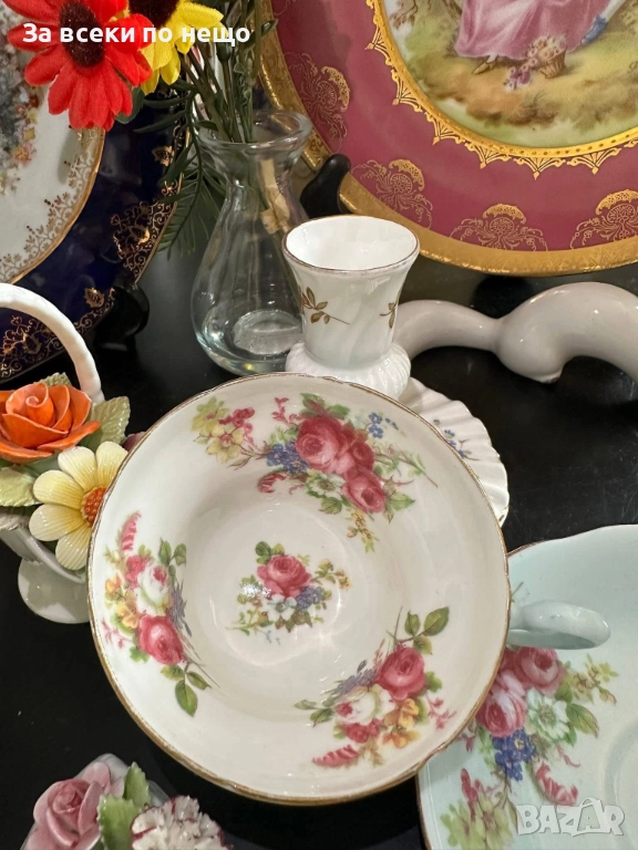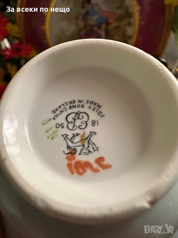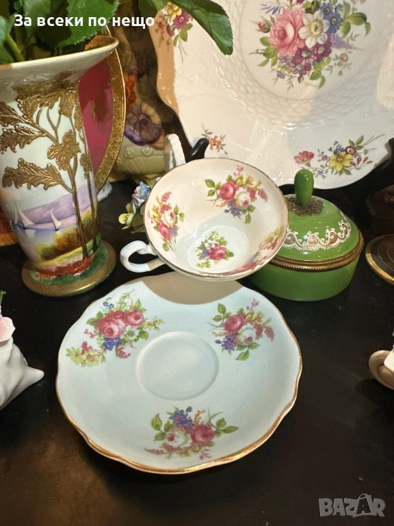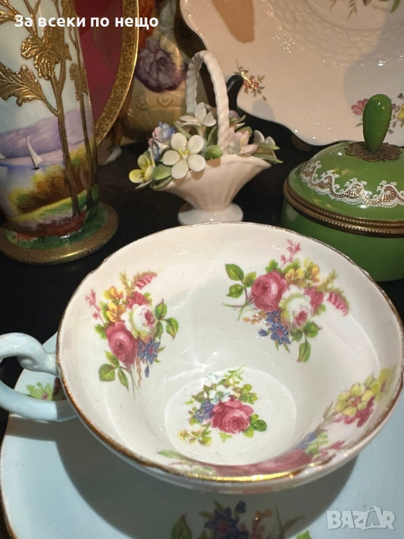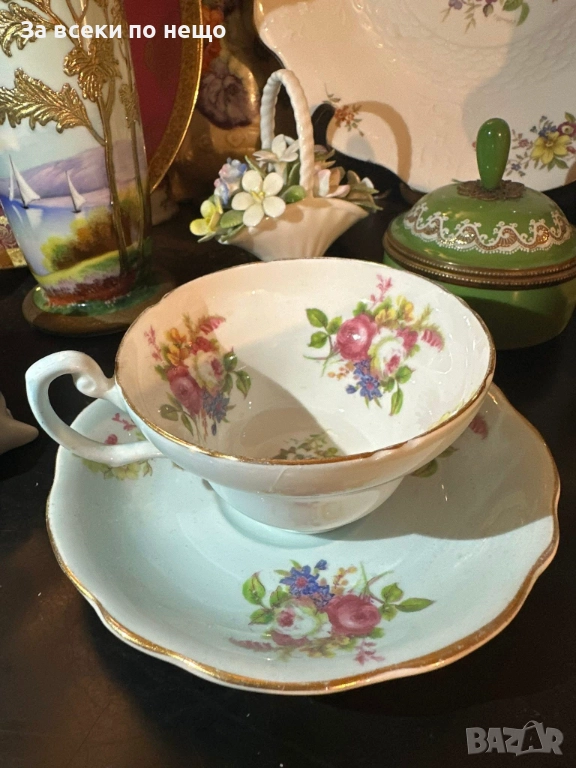 E.B. FOLEY England Circa 1937 - великолепен двоен сет в млечно синьо и много ефектни ръчно изрисувани цветя и букети, невероятна красота и хармония, лек златен кант с много нежност и елегантност, вместимост на чашката 200 мл,отлично качество, невероятна визия, елегантност и сравнително рядка серия.