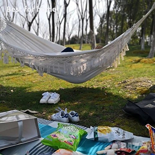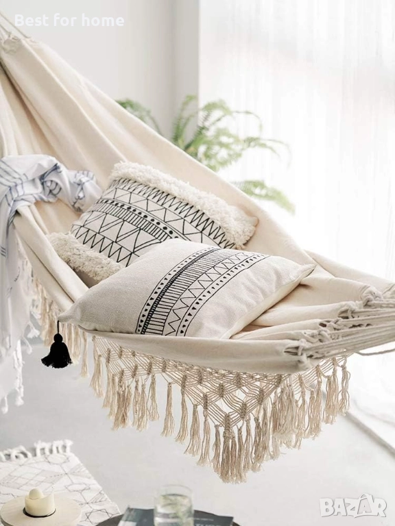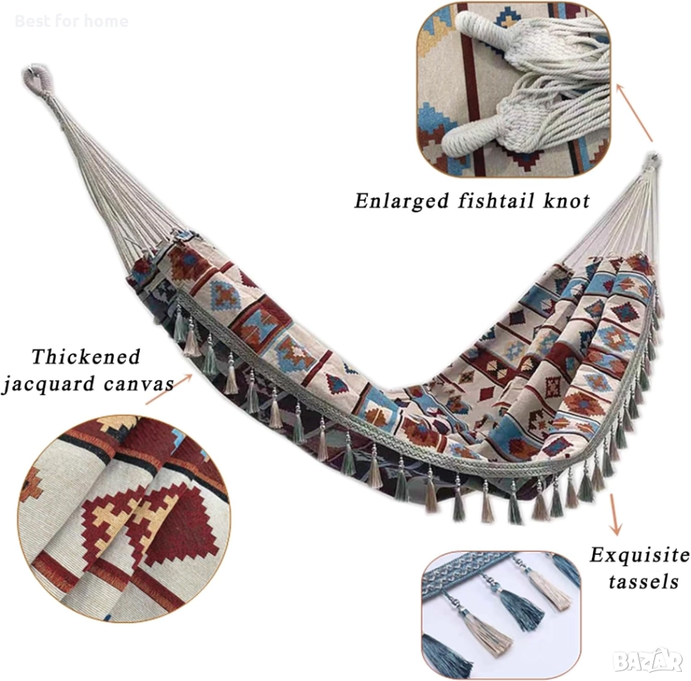 Универсалност: Употреба на закрито/на открито: Проектиран както за употреба на закрито, така и на открито, този хамак добавя бохемски щрих към всяко пространство.
