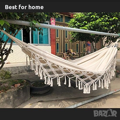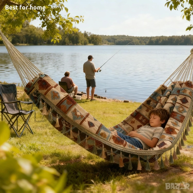 200х 100см и до 120 кг Материал 80% памук и 20% полиестер: Изработен от смес от 80% памук и 20% полиестер за издръжливост и комфорт, осигурявайки дълготрайно изживяване в хамака.