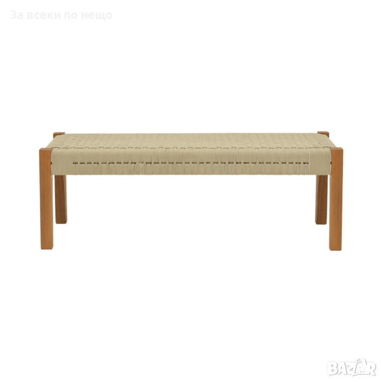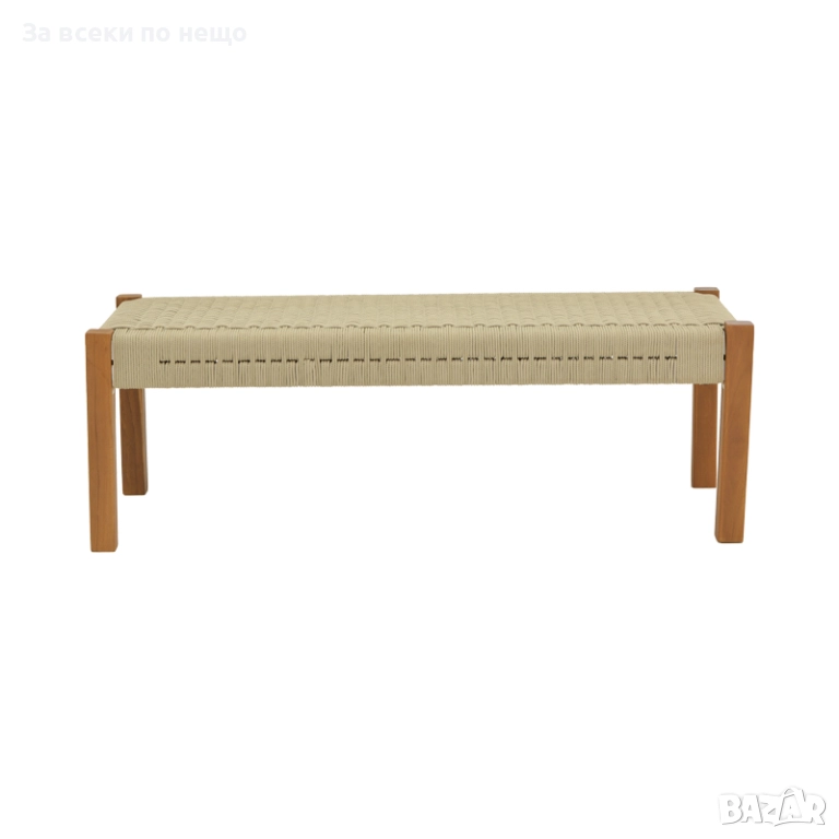 Пейката е идеална за допълване на естетиката на вашето външно пространство. Характеристики: *Рамка, изработена от тиково дърво с отлично качество, което предлага устойчивост на време и износване. *Тапицирана с високоустойчиво синтетично въже. Размери на продукта: Дължина: 120 см Широчина: 45 см Височина: 40 см Височина на седалката: 40 см