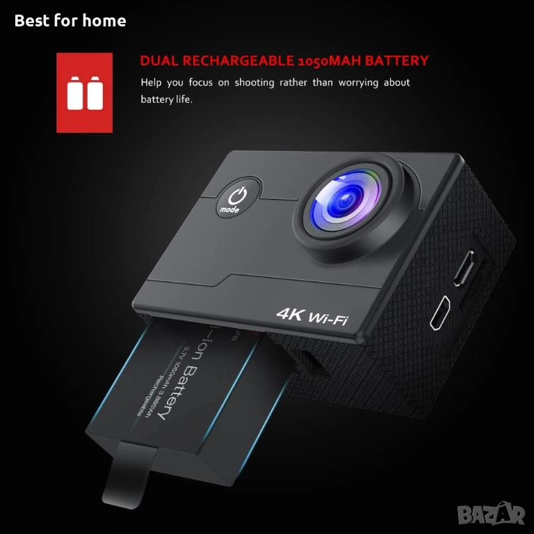 Ултра оригинална 4K екшън камера: професионална 4K 30fps, също 2.7K 30fps, 1080P 60fps, 1080P 30fps, 720P 120fps видео резолюция (опционално) и 20MP фото резолюция.