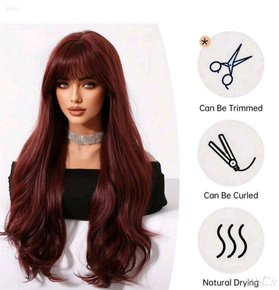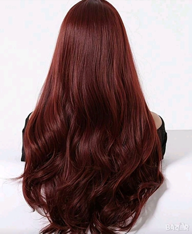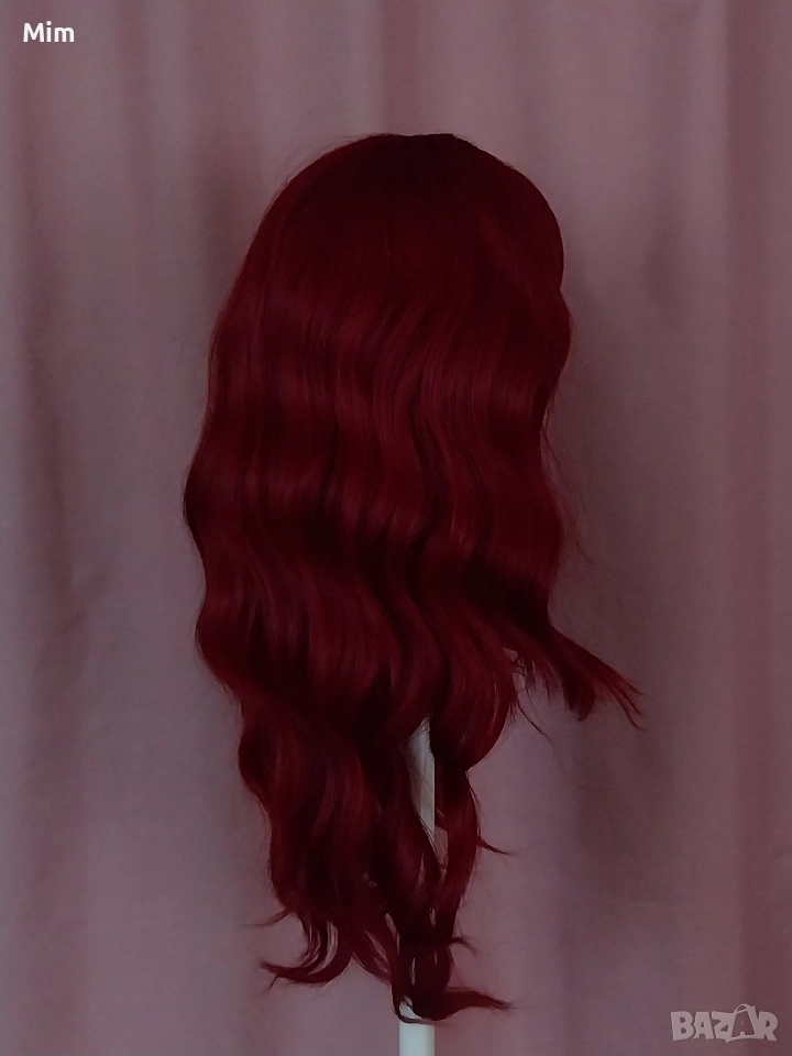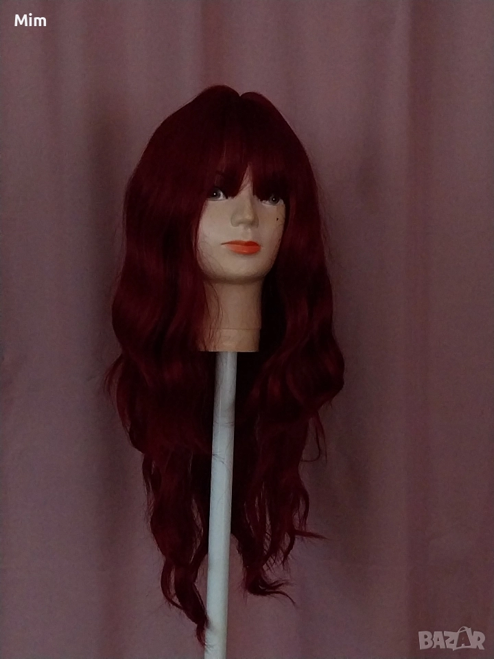 60 см Перука в червено бордо с бретон → Обява 52589287
