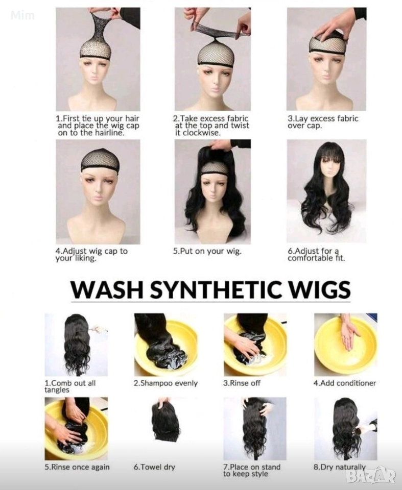 Перука от изкуствен косъм 60 см с бретон с дишаща шапчица, може да се реши и пере Доближава се до естествената коса. Нова в опаковка.