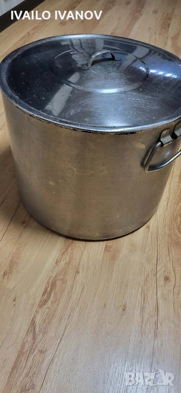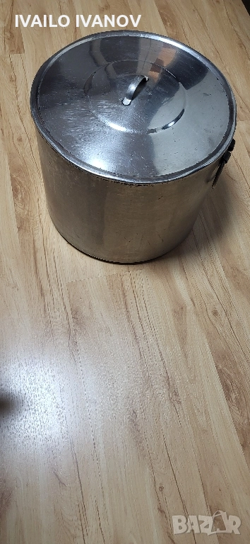 Казан 40литра с капак на Хром Силистра дебела неръждавеика 2мм алпака истински тежък и масивен на практика вечен от соца в перфектно състояние