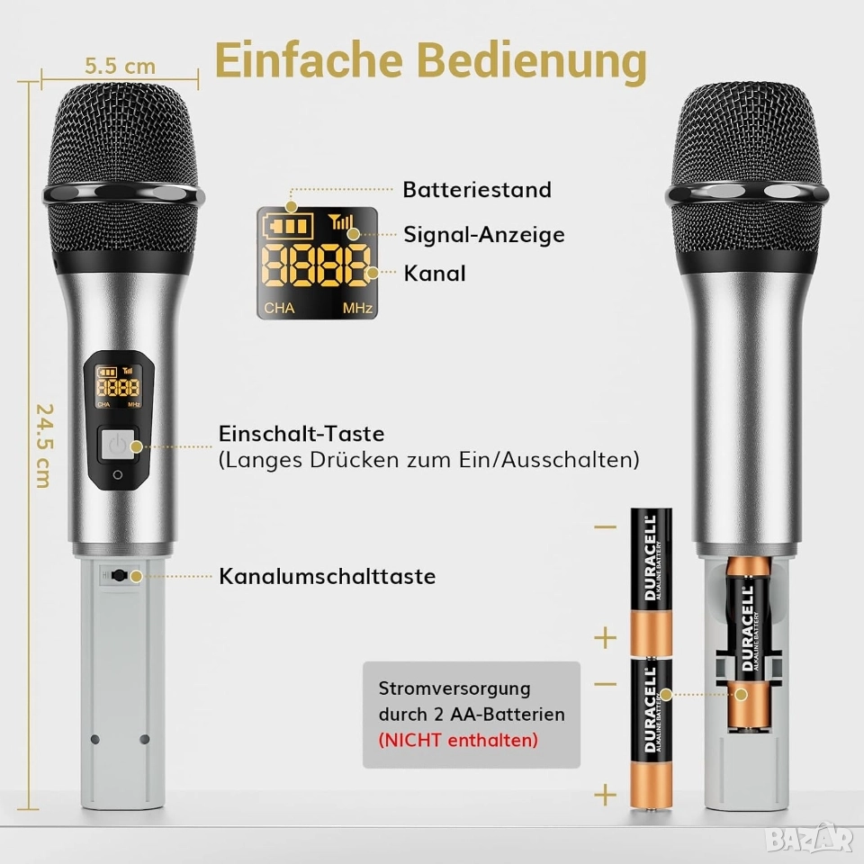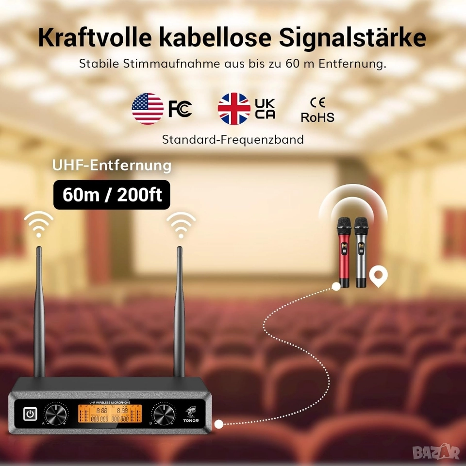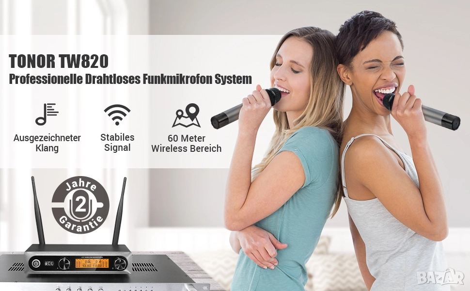 безжичен микрофон. Това го прави идеален за различни случаи, като например домашно караоке, сценични изпълнения, сватби и др.