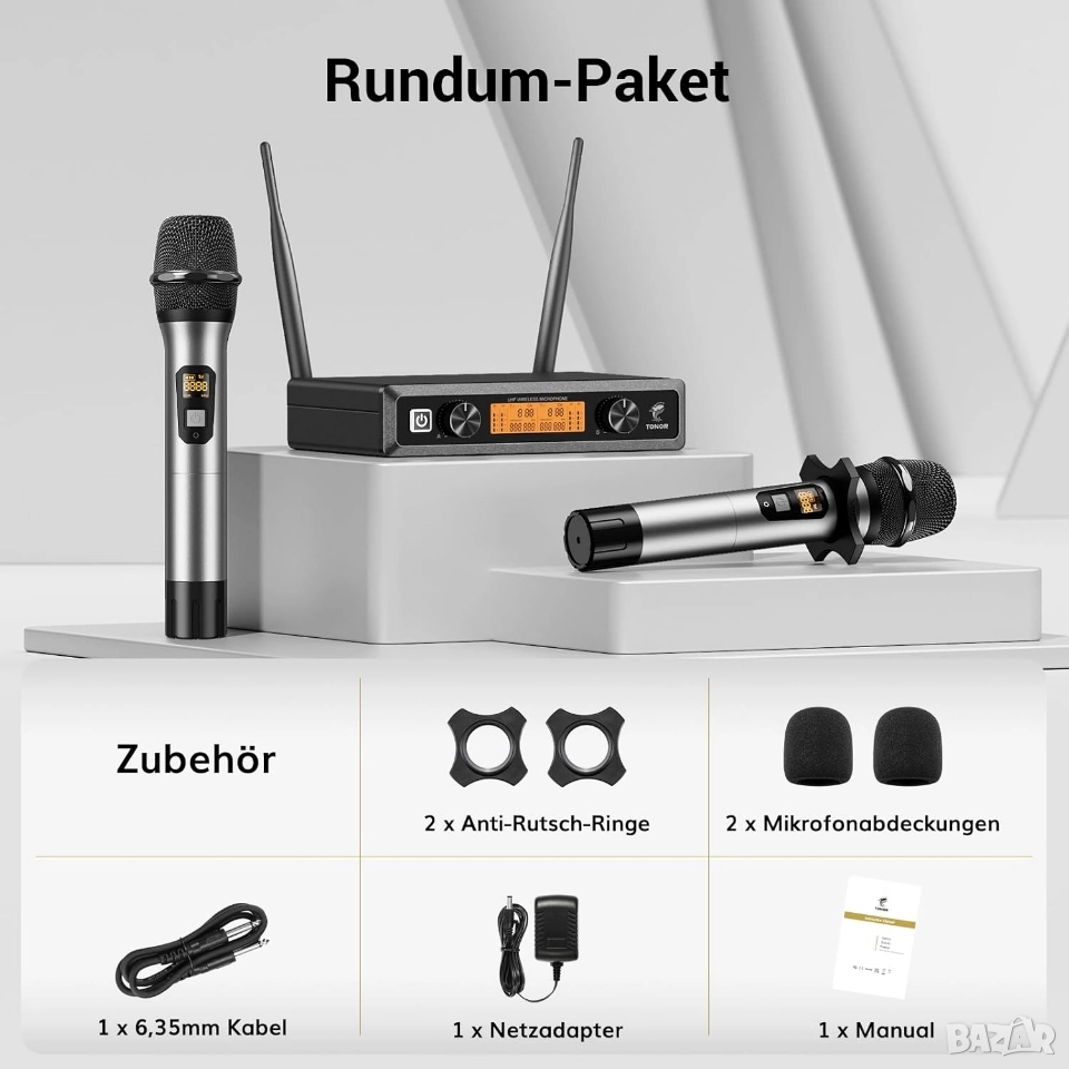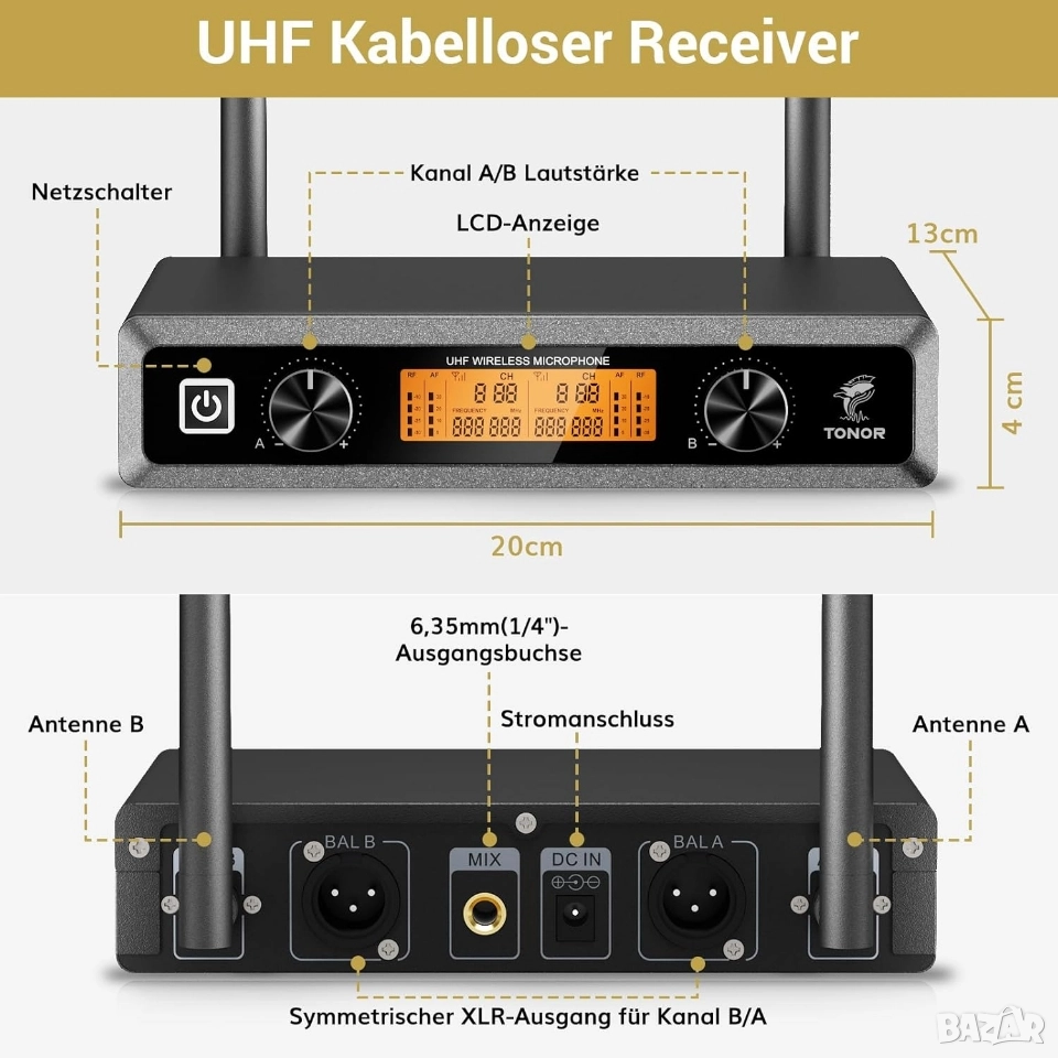 Комплект 2бр професионални безжични микрофона с приемник, TONOR TW820
