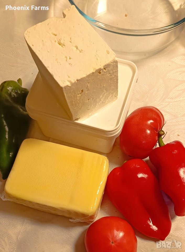 сирене, зрял кашкавал . Сиренето е в саламура , с морска сол .