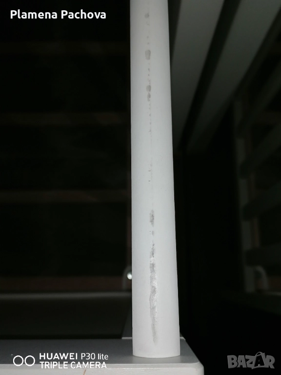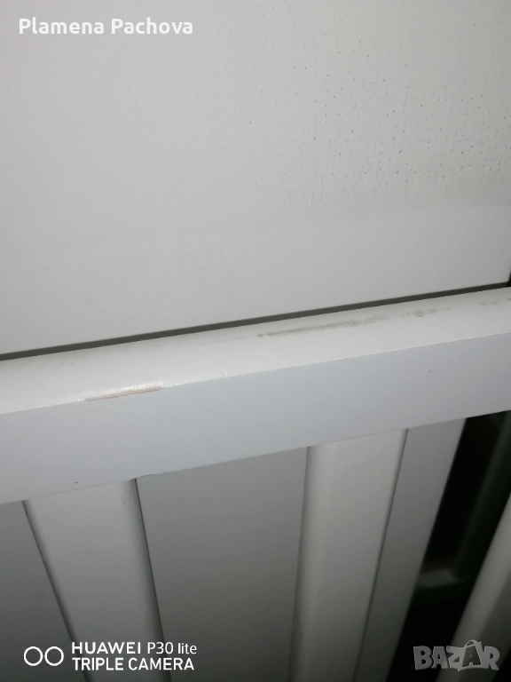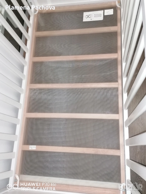 ЗАБЕЛЕЖКА: От едната страна на креватчето има видими следи по двете перила, нанесени от повърхността на повивалник. Тези дефекти могат да бъдат лесно отстранени. На едно от перилата около средата има нараняване на дървото от закрепената камера на бейбифона!