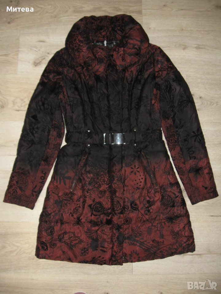 Desigual дамско зимно яке, неразличимо от ново. С премахнат вътрешен етикет за автентичност. Ватирано, с ефектна яка. Цвят тъмночервен. Размери от рамо до рамо 42 см, от мишница до мишница 51 см, ръкав 62 см, дължина 85 см. Няма забележки. Изпращам по еконт и спиди с опция преглед и тест.