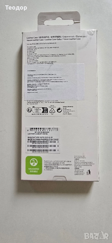 Продавам оригинален кожен калъф Samsung, модел EF-VS918LBEGWW, специално за Galaxy S23 Ultra. Калъфът е нов, неразпечатван и е официален аксесоар на Samsung.