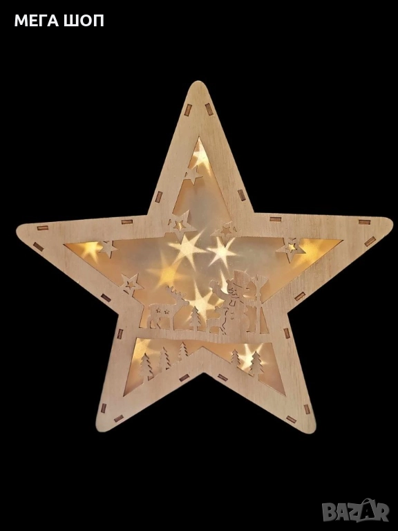 Дървена светеща настолна фигурка Звезда, Размер: 20X20X2,50 см/ВАРИАНТИ: С къща или със Снежен човек, снимка 1 - Декорация за дома - 52590383 Дървена светеща настолна фигурка Звезда, Размер: 20X20X2,50 см/ВАРИАНТИ: С къща или със Снежен човек, снимка 2 - Декорация за дома - 52590383 Дървена светеща настолна фигурка Звезда, Размер: 20X20X2,50 см/ВАРИАНТИ: С къща или със Снежен човек, снимка 3 - Декорация за дома - 52590383 Дървена светеща настолна фигурка Звезда, Размер: 20X20X2,50 см/ВАРИАНТИ: С къща или със Снежен човек, снимка 4 - Декорация за дома - 52590383 1/4