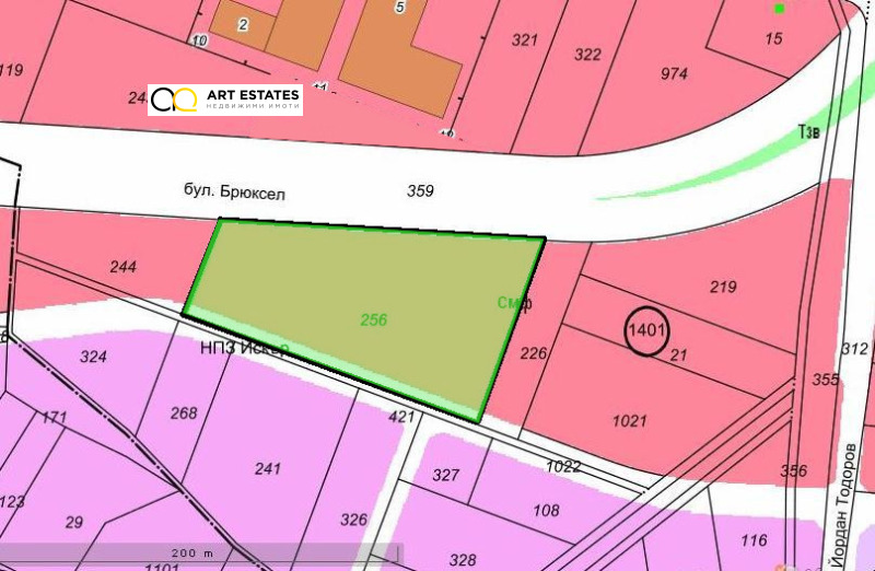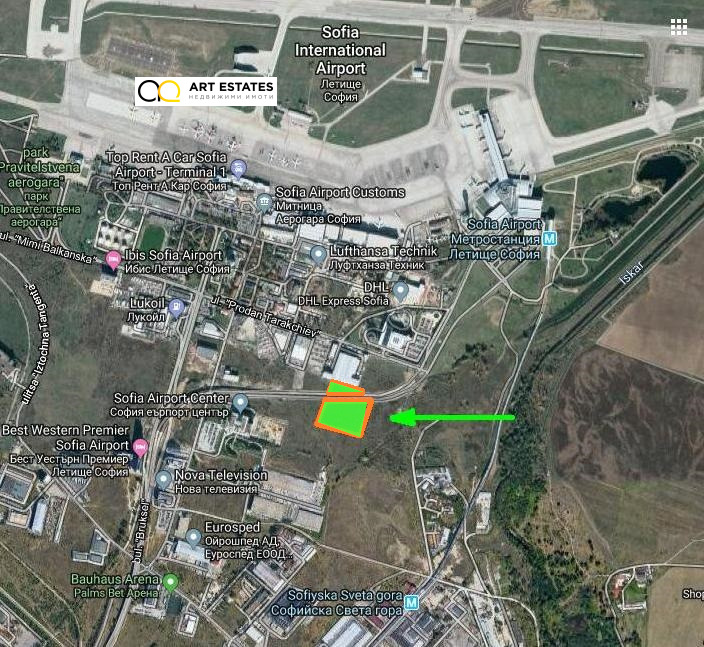 Предлагаме на Вашето внимание поземлен имот непосредствено до 'Летище София' разположен и с лице на бул. 'Брюксел' в близост до Терминал 2. Теренът е с площ от 11 093 кв.м. Отстоянието от двата терминала на летището е приблизително 600м. Устройствената зона е СМф с параметри на застрояване: плътност 60%; коефициент интензивност на застрояване 3,5; без ограничение в подземната РЗП.