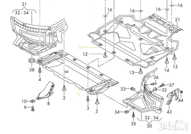 Освен това изолират двигателя, като по този начин при ниски температури той загрява по-бързо. Намалява се и силата на шума на двигателя и скоростите. Корите под двигател и скоростна кутия са снабдени със специални конструктивни отвори, които подпомагат доброто охлаждане на системите. Те предпазват картера от счупване при попадане на неочаквани препятствия по пътя и не позволяват достъпа на животни до двигателя и скоростите.