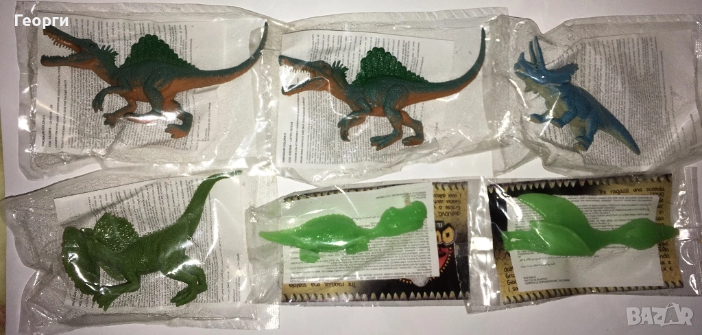 Продавам неразопаковани пакетчета с играчки - гумени динозаври от шоколадови яйца от Италия.