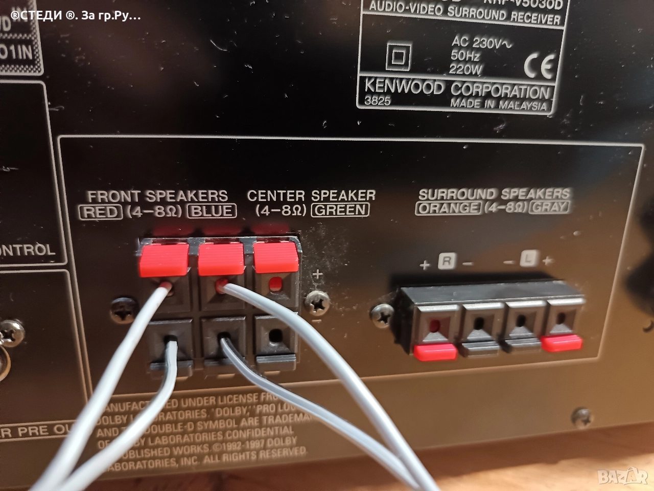 ЦЕНАТА Е ЗА КОМПЛЕКТА! МОЖЕ И ПО ОТДЕЛНО. УСИЛВАТЕЛЯ- 55 евро. ТОНКОЛОНИТЕ 40 евро. ХАРАКТЕРИСТИКИ : ресивър Kenwood KRF-V5030D. Доста мощен, с леки външни забелешки по горния капак, вижда са на снимките. 4-8ohm. Доста добре хваща станциите на радио. Това е 5.1-канален съраунд ресивър, съвместим с Dolby Digital, DTS и Dolby Pro Logic II. Може да осигури изходна мощност до 100 вата на канал. Разполага с различни опции за свързване, включително входове за DVD плейъри, CD плейъри и други аудио устройства, както и изходи за високоговорители, слушалки и активен субуфери. Устройството е произведено с висококачествени компоненти, за да осигури надеждна и дълготрайна работа.