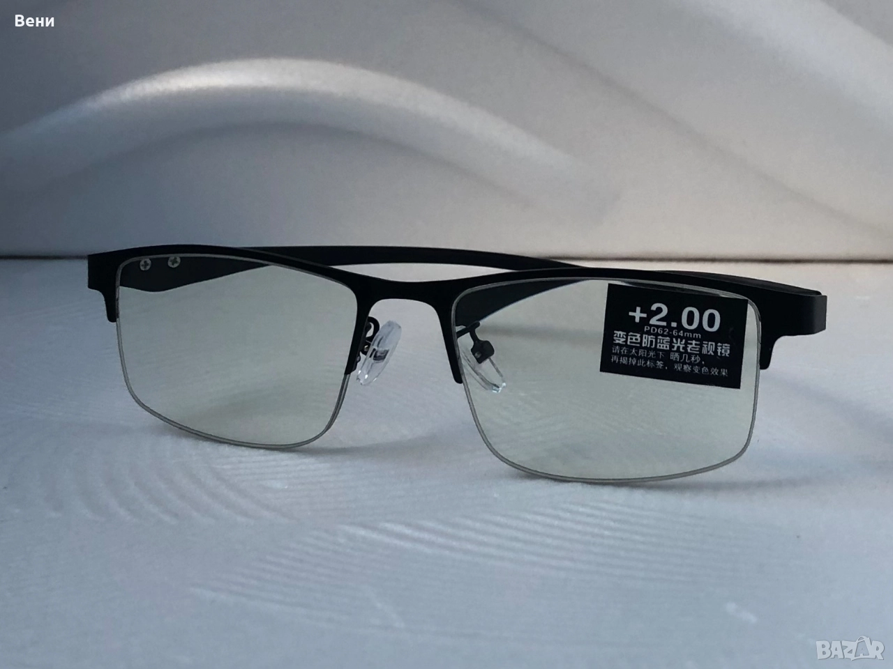 Стилни диоптрични очила хелиоматик с метална рамка и пластични дръжки. Леки и удобни. Антирефлексни. Подходящи както за компютър, така и за ежедневно носене и четене. Налични (+1.00 - +4.00 диоптъра). Реални лични снимки! Изпращам със Спиди или Еконт с преглед и проба!