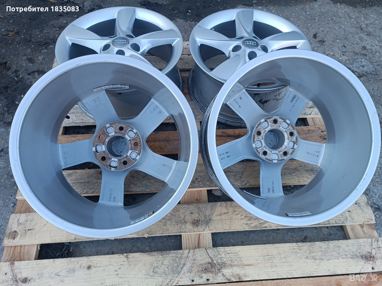 Продавам комплект оригинални лети джанти Ауди с размери 17" 5х112 7.5J ET37 ЦО66.6мм. Джантите са в много добро състояние, без удари, кривини и заварки.