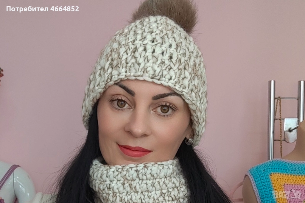 Представям ви ръчно изработен комплект, състоящ се от модерна плетена шапка с пухкав естествен помпон от лисица и уютна шал-яка. Комплектът е с едра, модерна плетка в спортно-елегантен стил, подходящ както за жени, така и за мъже.