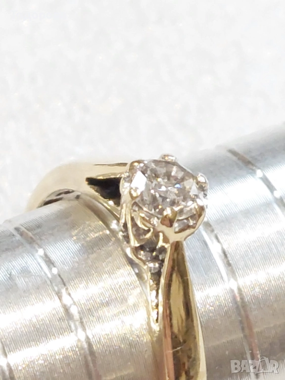 Златен дамски пръстен с брилянт 0.25 карата,злато проба 375 → Обява 52592165