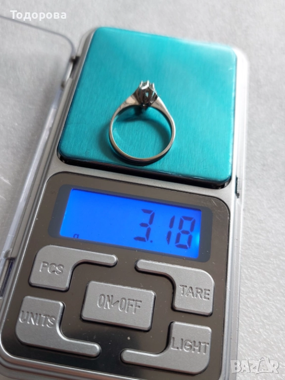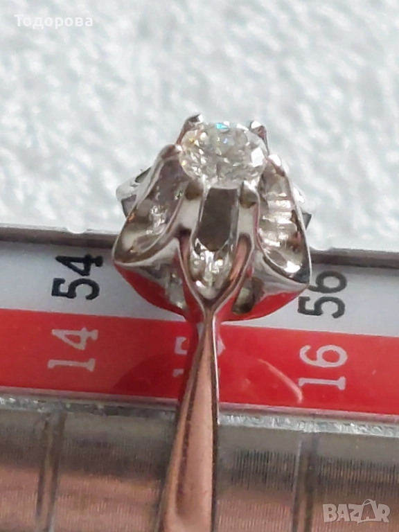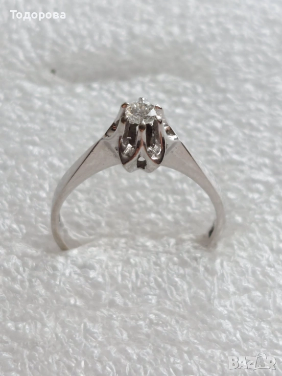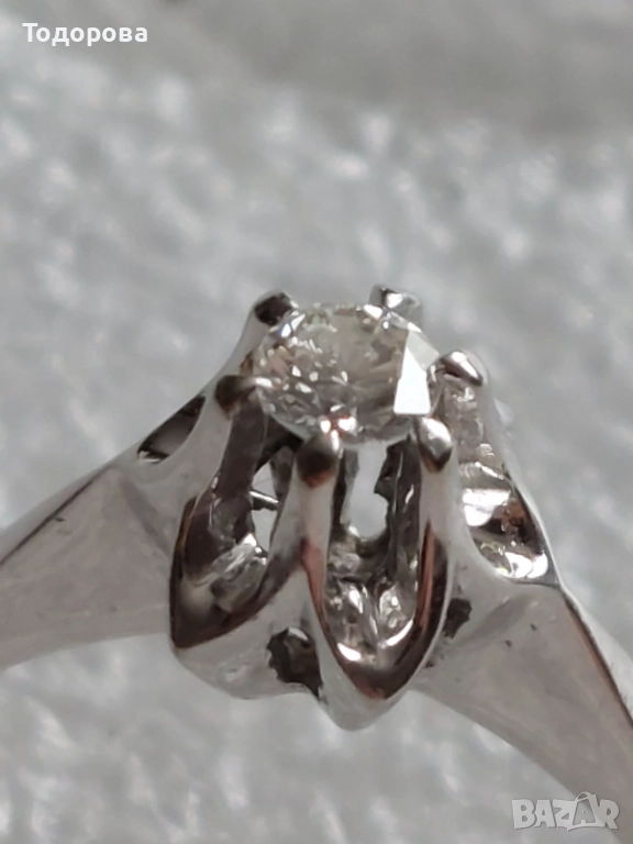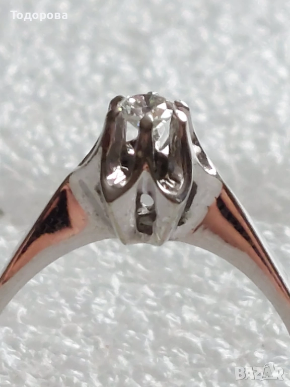 Предлагам за продажба дамски златен пръстен с диамат с размер 0.20 от карата.Бяло злато 18 карата.