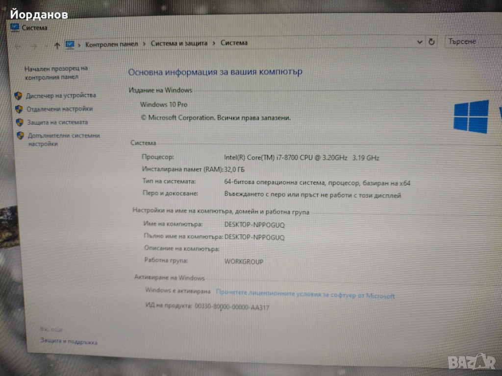 Преинсталиран с Windows 10 Pro изцяло на Български език , качени са всички необходими програми за нормална работа!