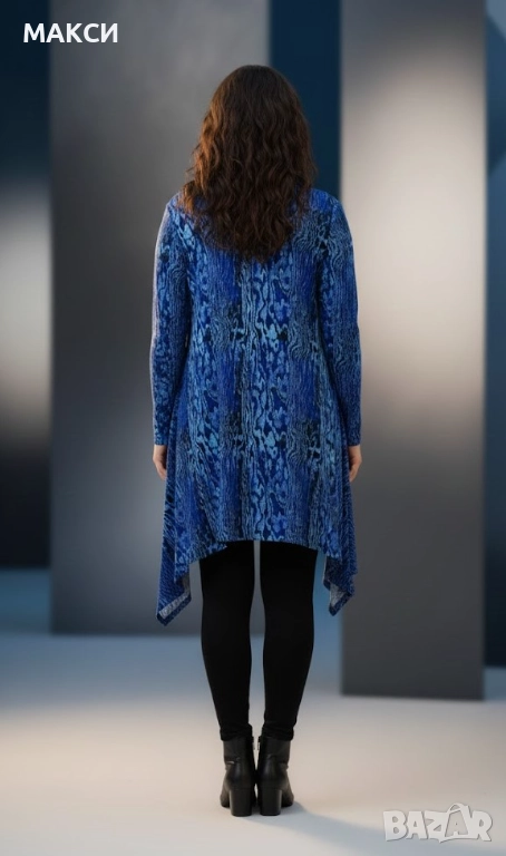 Разкошна памучна маркова елегантна еластична А-симетрична туника в модернистичен десен /аутлет/ → Обява 52592425
