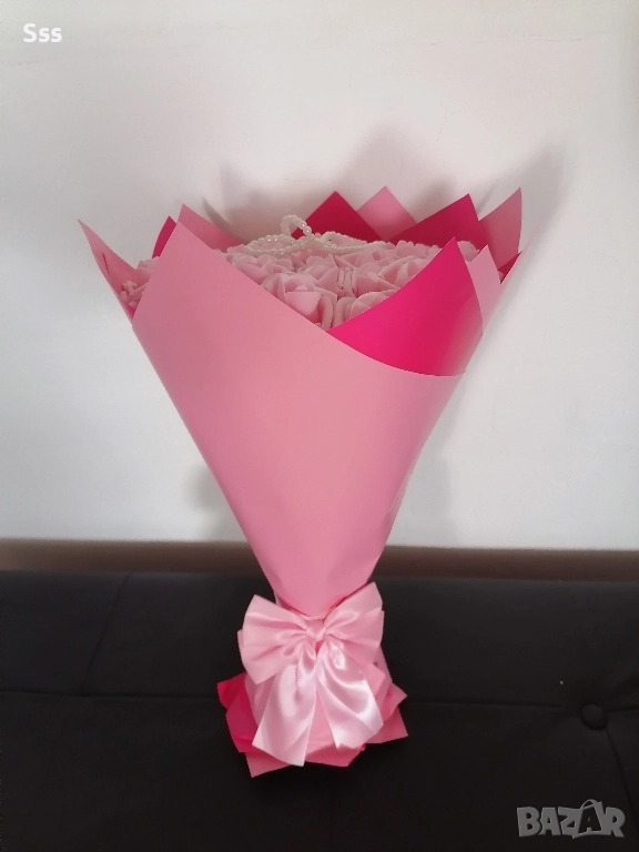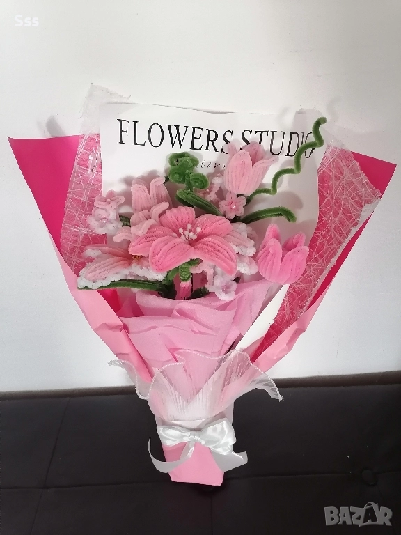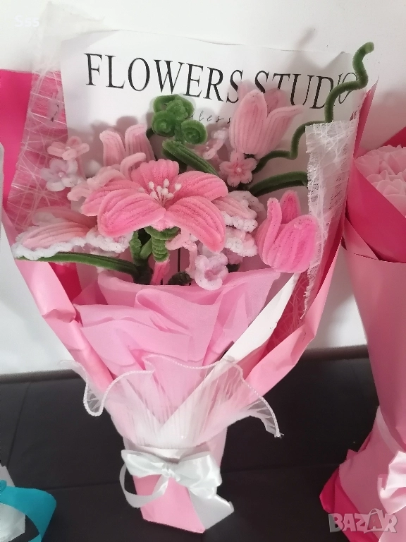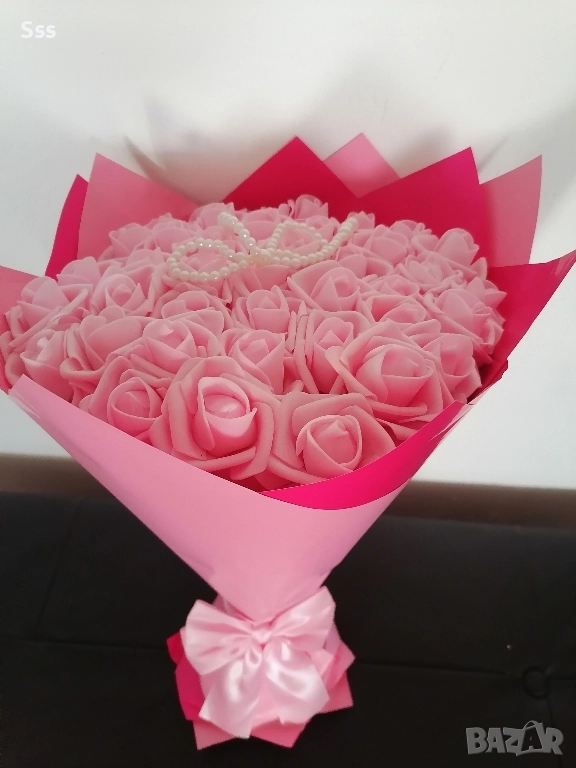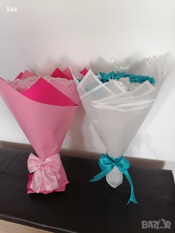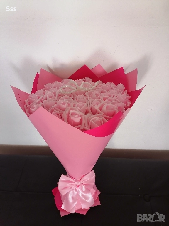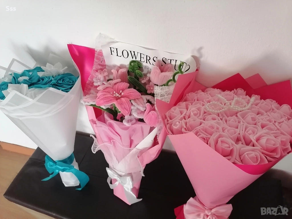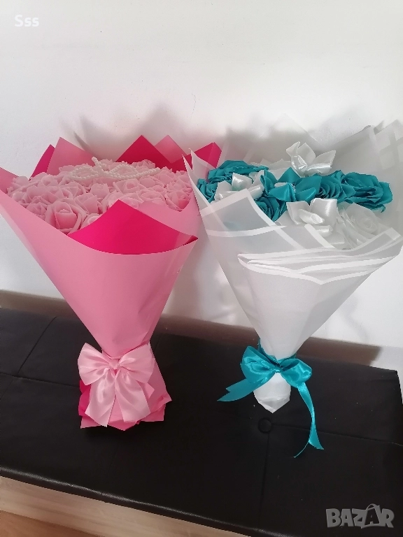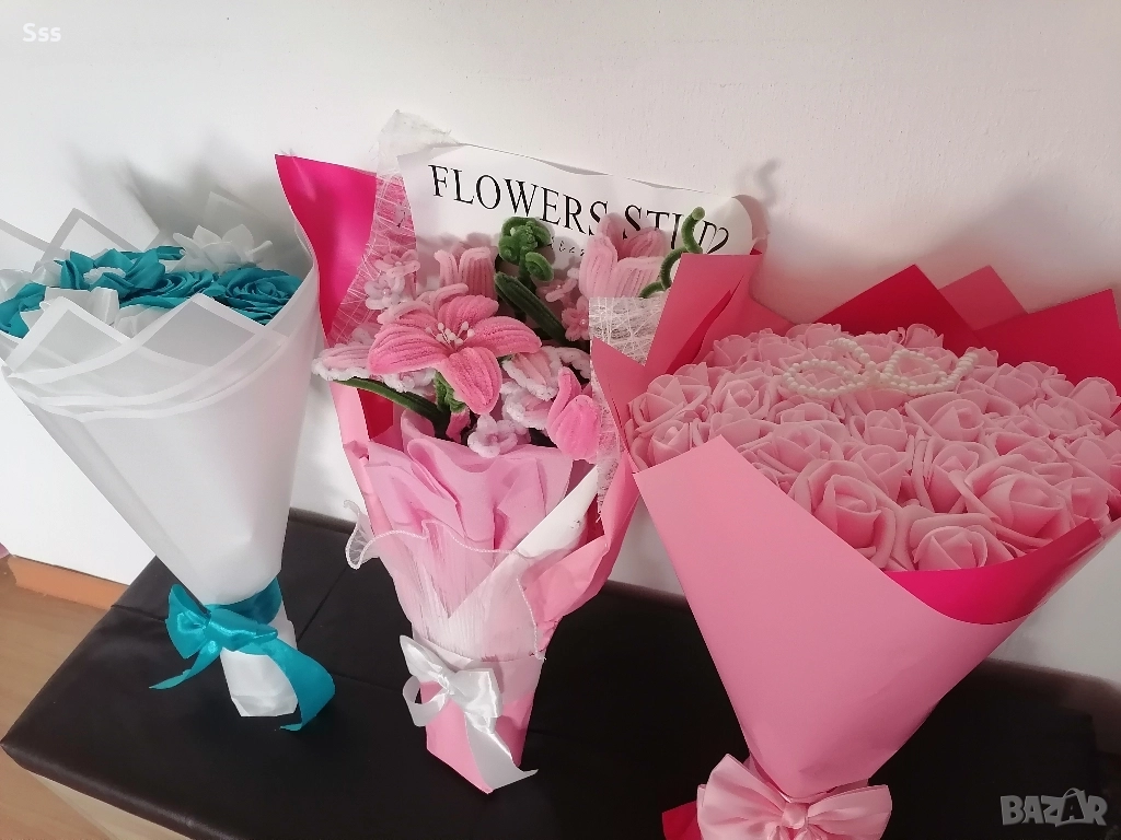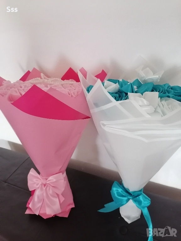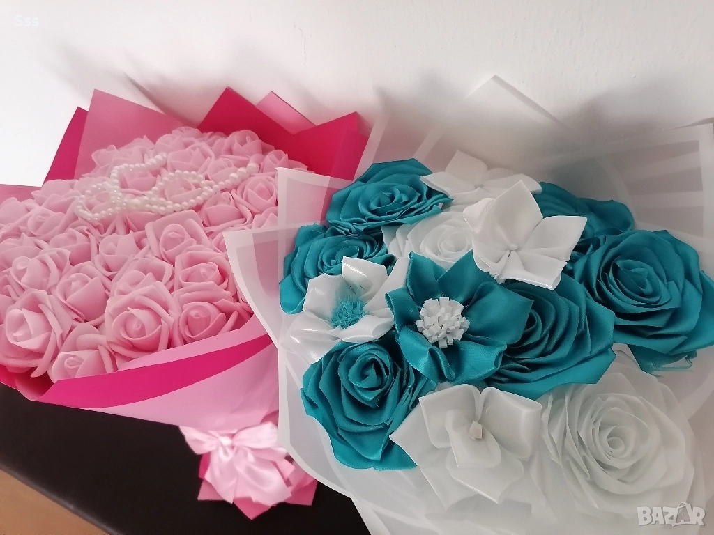 Букет от сатенени вечни рози Ръчна изработка. Цена за бр.