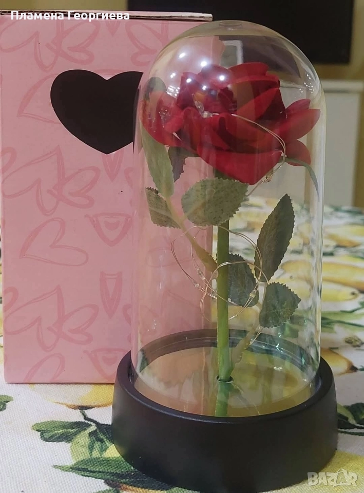 Вечна роза в стъкленица с led светлина → Обява 52592891