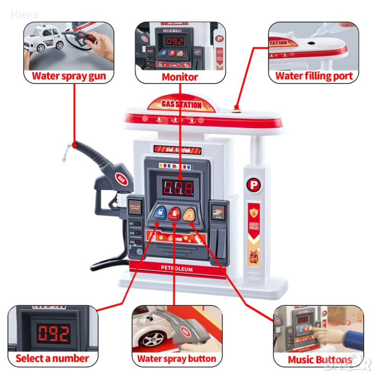 - реалистично зареждане на гориво (от пистолета за зареждане - налейте вода в резервоара на играчката).