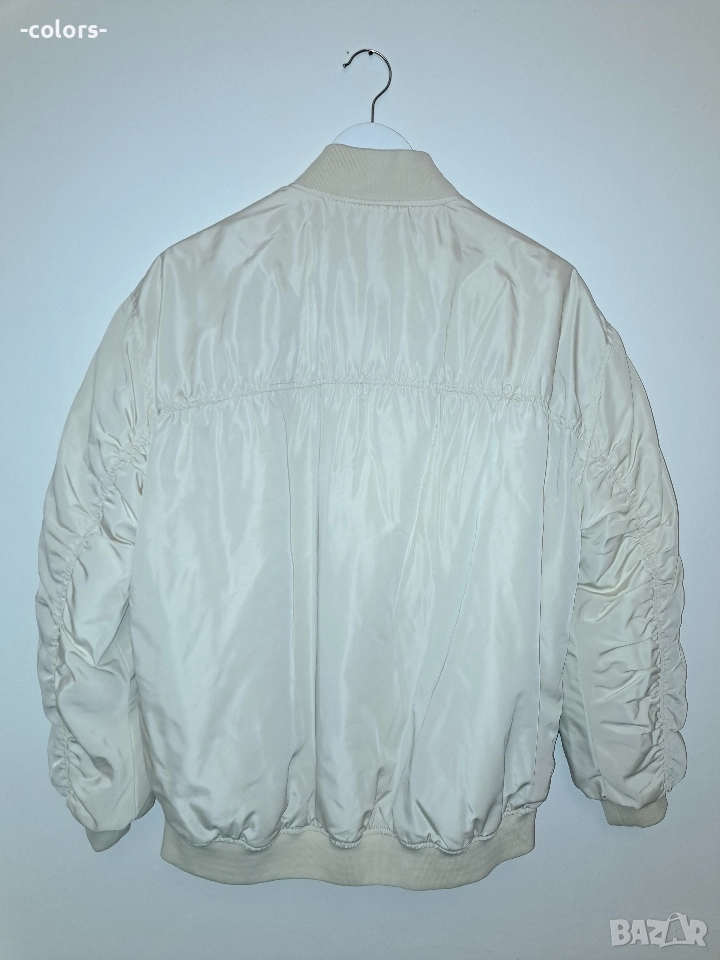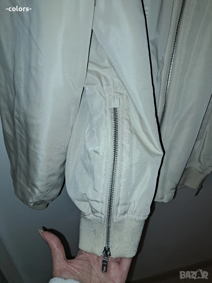 Бежовото бомбър яке от Zara е стилно и удобно. Няма забележки. Дължина 63см/71см, ширина 52см, ръкав 60см.