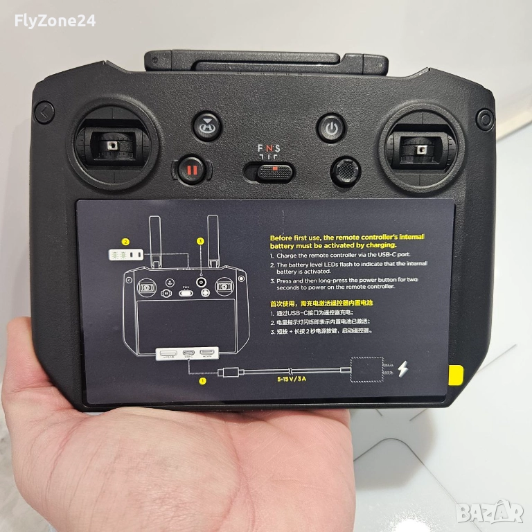Комплектът включва само това, което е на снимката (дистанционно + стикове) DJI RC Pro има вграден ярък 5.5-инчов екран с 1080p резолюция. Този издръжлив дисплей с висока яркост е идеален за използване в режим на открито, като осигурява ясно изображение дори при пряка слънчева светлина.