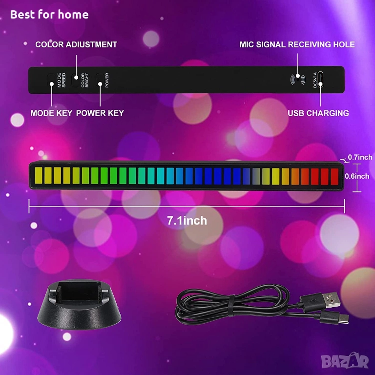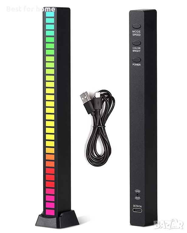 МНОГОЦВЕТНА СВЕТЛИННА ЛЕНТА СЪС ЗВУК - С 32 вградени ослепителни светлинни мъниста, чувствителен вграден микрофон, 5 нива на яркост и скорост, нашата RGB светлинна лента за бюро е отлична за слушане на музика.
