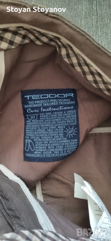 Продавам мъжки панталон от марката TEODOR. Панталонът е носен буквално няколко пъти, тъй като вече не ми става, и е КАТО НОВ, без никакви следи от употреба или забележки.