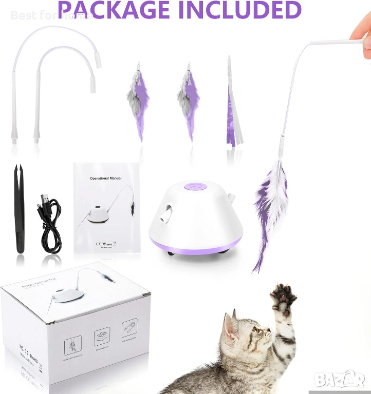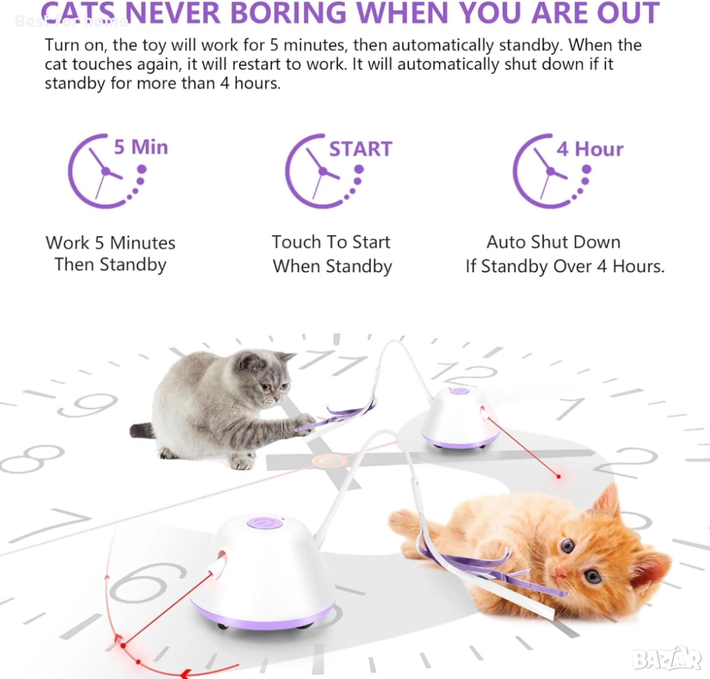 Играчка за котки, интерактивни играчки за котки за упражнения на домашни котки, автоматизирана светеща играчка за котки със светлина и пера, самовъртящи се играчки за котенца, електрическа играчка за котки с 3 режима, роботизирана играчка за котки.